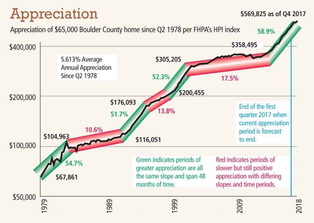 Looking back to 2008, you can see that home prices have almost doubled in the last 10 years (see City of Boulder chart).